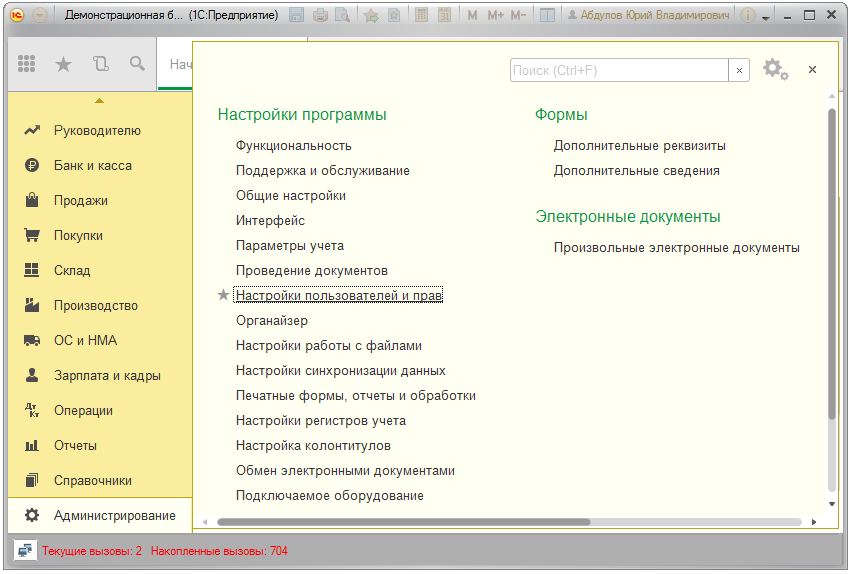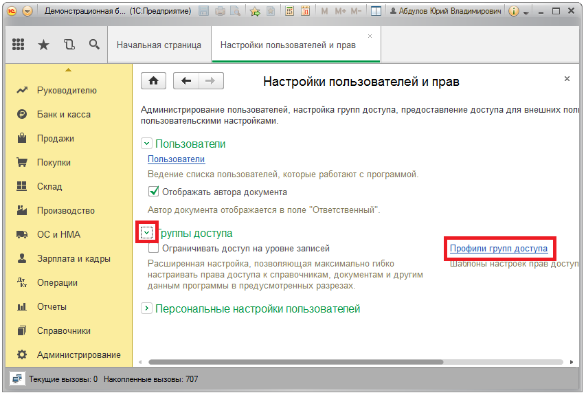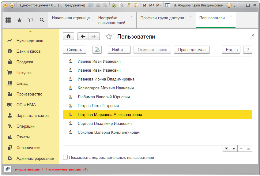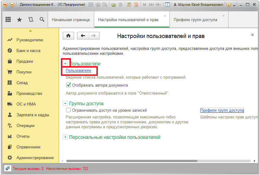 5. Возвращаемся в "Настройки пользователей и прав" и открываем пользователей.