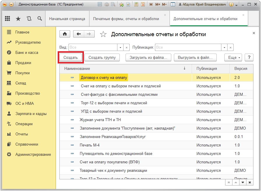 1. Администрирование - Печатные формы, отчеты и обработки.
