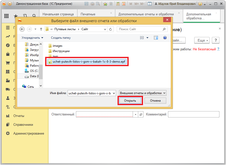 5. Находим и выбираем загруженный файл.