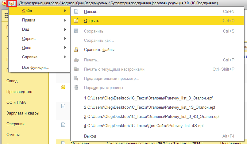 Откройте 1С в РАБОЧЕМ режиме и через меню "Файл" -